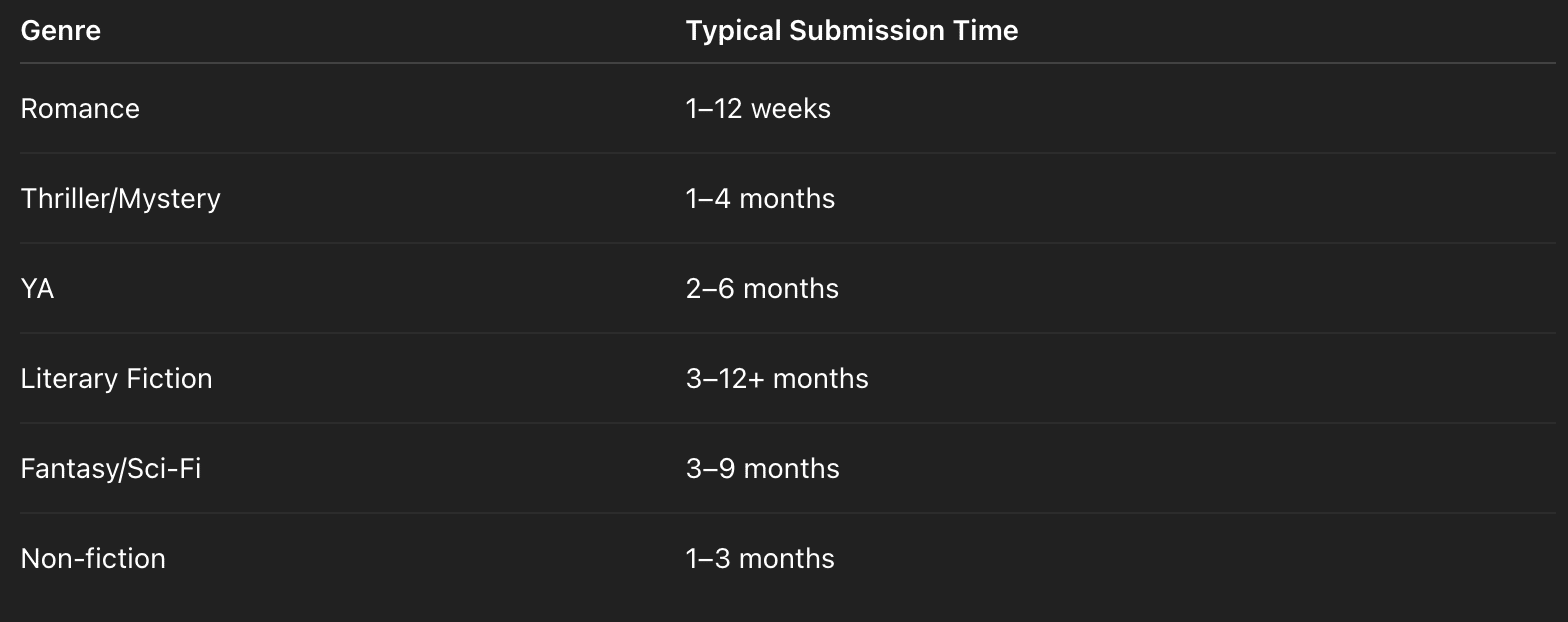 Ooh, and I’ll add the stats for the typical wait times for submission, just for FUN, for all of us lovers of numbers here.